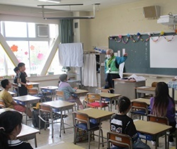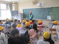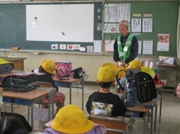 1年生が入った通学班での初めての一斉下校を行いました。4名の防犯ボランティアリーダーの方にお越しいただき、地域の子どもたちにお話しいただきました。