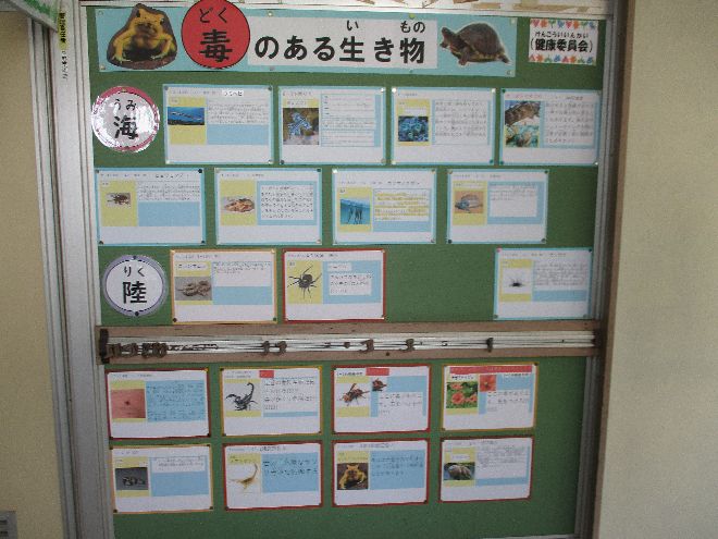 1階の掲示板では、いつもタイムリーな保健に関するニュースが掲示されています。保護者の皆さまも、ぜひご来校の際にご覧ください。 | |