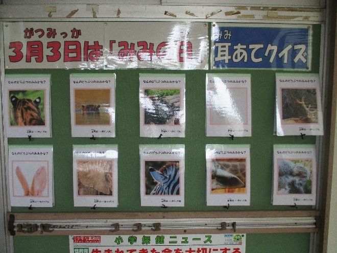 10月10日は「目の愛護デー」です。数字の10を横にして、並べて見ると眉と目の形になることが由来のようです。学習や生活の中でデジタル機器を見る時間が長くなり、目にかかる負担が大きくなりがちですね。目を大切にする気持ちを高められるきっかけとなれる素敵な掲示物が出来上がりました。養護教諭作成です。1階体育館通路前に掲示しております。