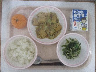 2月6日(金) ふゆやさいのカレー 牛乳 かいそうサラダ ヨーグルト |