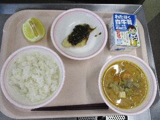 2月2日(月) いわしのかばやきどん 牛乳 てづくりにくだんごのスープ かぶのあさづけ |