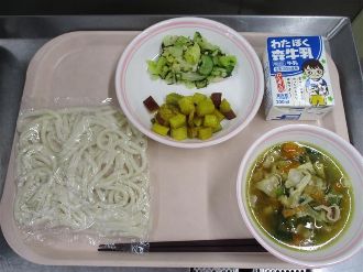 2月10日(火) おけがわふううどん 牛乳 さつまいものスパイシーやき しおこんぶあえ |