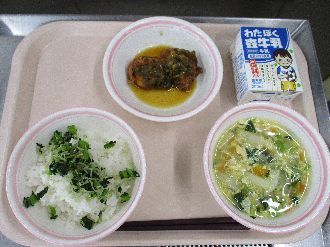 2月20日(金) むぎごはん 牛乳 とりにくのゆうりんソース ふゆやさいのたまごスープ こまつなふりかけ |