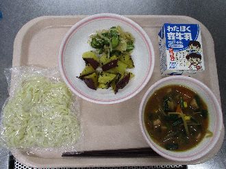 2月25日(水) 6ねんせいとくせいみそラーメン 牛乳 だいがくいも ピリからきゅうり |
