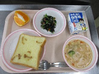 2月27日(金) ベーコンマヨトースト 牛乳 トマトクリームシチュー こひじきのまりね しらぬい |