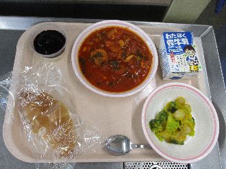 11月4日(火) クロワッサン 牛乳 たっぷりやさいのミネストローネ ブロッコリーとかぼちゃのポッシェ ミルクプリン埼玉県産ブルーベリーソース |