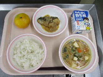 11月6日(木) むぎごはん 牛乳 さばのごまだれやき とうにゅうピリからとんじる みかん |