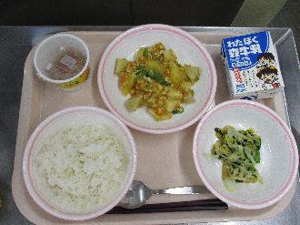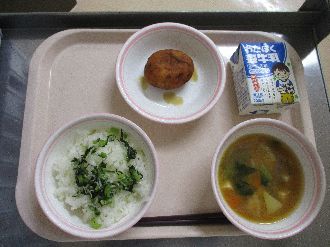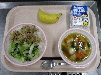 11月17日(月) むぎごはん 牛乳 さといものそぼろに いわつきやさいのおひたし さいたまけんさんなっとう |