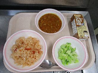 11月21日(金) きたもとトマトカレー トマトライス わたぼくミルクコーヒー カリフローレサラダ |