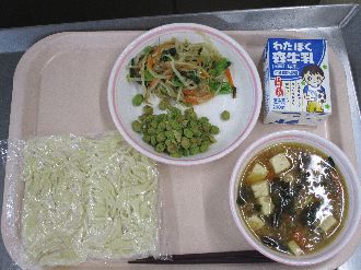 11月26日(水) いわつきとうふラーメン 牛乳 さやまっちゃまめ ナムル |