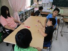 2年生の教室からにぎやかな声が聞こえてきました。入ってみると「お~~~」とてもクオリティの高い手作りのおもちゃがありました。どうやら最終的にはこのおもちゃを使って1年生を喜ばせてあげようということらしいのです。可愛いですね~。喜んでもらいたい相手がいると一生懸命になれるって素敵です!あおぞら学級は教室で体ほぐしの運動をしていました。冷たい床に貼り付いてとても気持ちがよさそうです。私もやってみました!なるほど確かにこれは…病みつきになります。子ども達がふにゃ~って地面に寝転んでいる意味がよく分かりました。