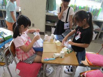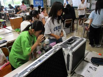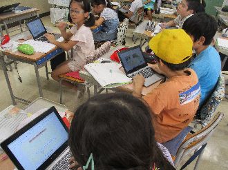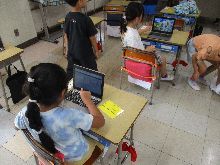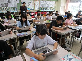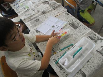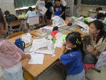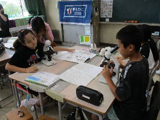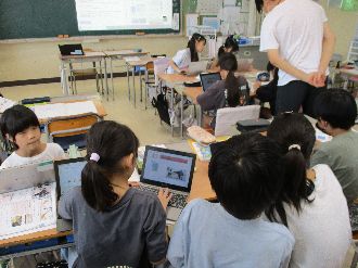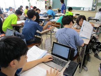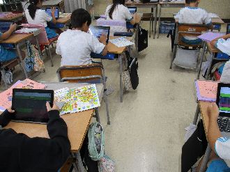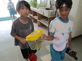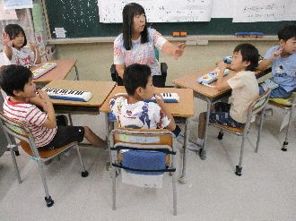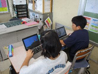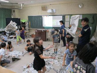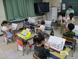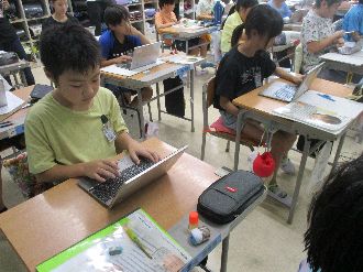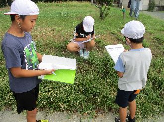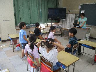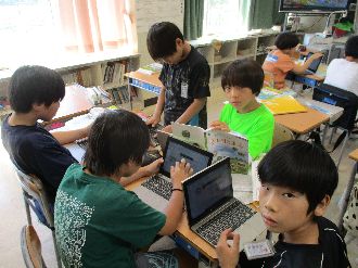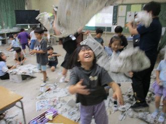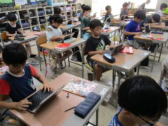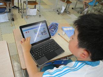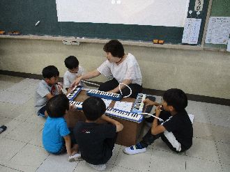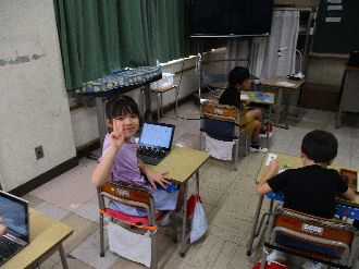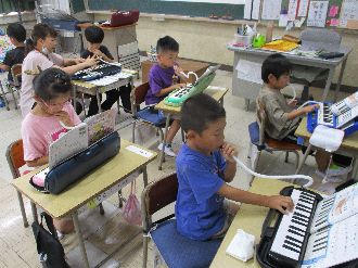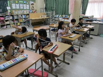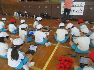 1年生が音楽会に向けて鍵盤ハーモニカの練習をしています。何度も何度も運指を練習します。初めはなかなか難しい様子ですが繰り返し練習することで、どんどん上達していきます。継続は力なりですね。本番が楽しみです。ご家庭でも練習をすることで上達が速くなると思います。是非子どもたちの運指見て見てください。2年生のお教室が!たたた大変なことになっていました。新聞紙が大量に舞っていました~。「どんどん変わるよ新聞紙」図工の学習のようです。これはとてもワクワクな体験です。様々に変わる形から何を考えることができたでしょうか。引き続きこの新聞紙を使用して作品づくりがあるようです。今度はどんな形にしていきましょうか。3年生が夏の虫採集をしていました。先日の虫探しではたくさんの虫を探すことができましたが、今日はどうでしょう。先生が虫網を用意してくれましたが「手でいけるよ」と多くの声が聞こえてきました。たくましいな~。「ゴキブリもいけるよ」というボソッとつぶやき…。た、たくましいなぁ。4年生の跳び箱の学びではタブレットを使用して、お友達の着手~跳躍~着地の様子を動画に収め、後で振り返る活動を行っていました。自分の演技を自分で確認できる…これは…伸びますね~。自分の小さい年の時代の学びから比べると羨ましい限りの環境ですね~。しかもお友達にアドバイスを受けながら動画の確認をするなんて光景…。素敵すぎるよ。