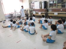 本日も発育測定がありました。「身長伸びているかなぁ」と心配する声が聞こえてきましたが、皆さん確実に大きくなっていますよ!これからもすくすく成長してください。本日は「防災の日」です。災害について考える大切な日にシェイクアウト訓練を行いました。まずは「自分の命を守ること」の話をしました。ご家庭でもこの機会にぜひ防災について話をしていただけると幸いです。