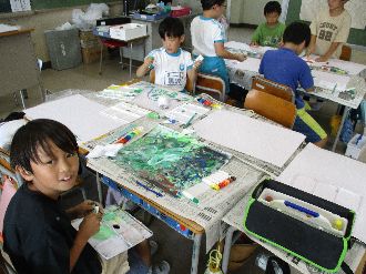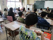 1年生が音読の聞かせ合いをしていました。句点(。)で次の読み手に変わるのですが、なかなか難しいようです。それでも上手な読み手の子はたくさんいます。きっとお家でも上手に練習をしているのでしょう。ご家庭での音読協力に感謝をした時間でした。2年生の絵具セットがピカピカで、これから始まる絵の具の学習を子どもと共に楽しみにワクワクしているように見えました!初めは恐る恐る筆を使っていてどんな作品になるのだろうと思っていて2時間後見に行くと、何ということでしょう。豪快な筆遣いに変わっていて作品も見事なものになりました。個人面談での作品展示を楽しみにしてください。3年生のマット運動を見に行きました。6か所の動きの異なるブースがあり、グループで回って運動を繰り返します。身体の使い方がうまいなぁ~いいなぁと思う初老の教頭でした。あおぞら学習のグループ学習高学年、帯分数の意味を考えていました。とても難しいことを考えています。みな一様に集中し考える姿が背中から伝わってきました。