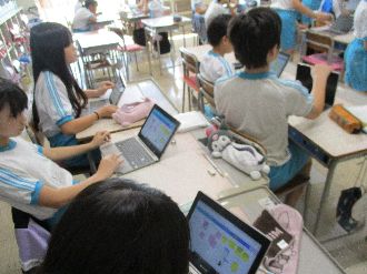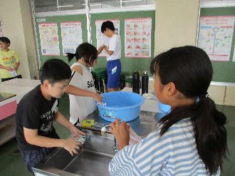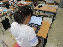 5年生の体育が楽しそうです★自分たちで決めた曲に合わせて跳び箱運動をする様子です。なかなかリズムよく跳んでいものです。曲があると何だか楽しい気分になりますね★次は○○よ~という声かけも多く聞こえ素敵な空間でした。私も担任時代これやったなぁと思い出しました…。その時の曲は「ウォ~タ~ボ~イズ」でした~^^流行りましたよね~。6年生が家庭科室で手洗い洗濯をしていました。今は洗濯機という大変便利な家電があり、手洗いでゴシゴシなんていう機会は頑固な汚れ以外は行いませんが、日頃より頑固な汚れは手洗い洗濯で戦っている方がいるのだということが認識できたのではないでしょうか。家族への感謝の気持ちをもってほしいですね~。「オフィスあおぞら」がすごいことになっています。タイピングスピードが見事なものです。おそらく学校の中でも指折りの速さを誇るでしょう。背筋がピ~ンとしていて後ろからの姿は本当に仕事しているようです。