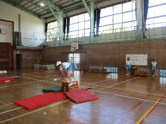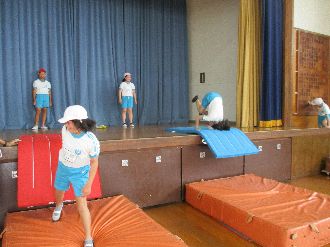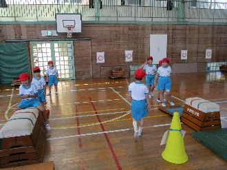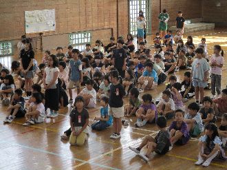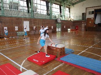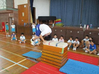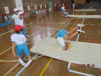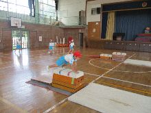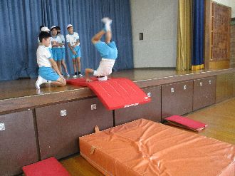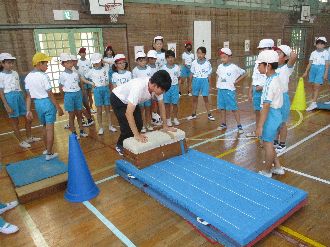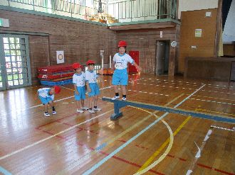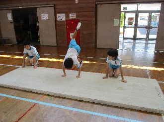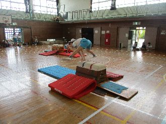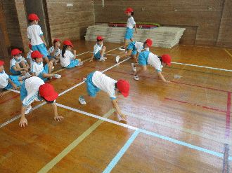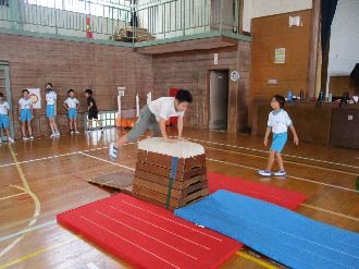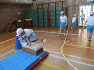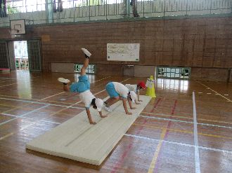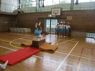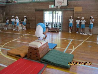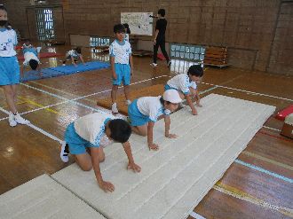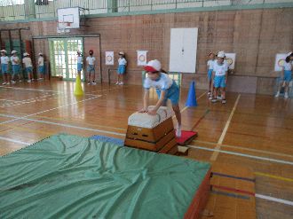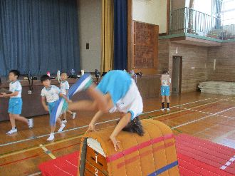 4年生が体育館で体つくり運動をしていました。たくさんの笑顔で、お友達に体をゆだねユラユラ揺らしてもらったり先頭にいるお友達のまねっこをして進んだりと見ている側も笑顔になる活動でした。5・6年生は器械運動(跳び箱)です。開脚跳びがダイナミックでさすが高学年であるなぁと驚いたとともに、3人組を組んでたくさんアドバイスし合って運動する姿に感心しました。アドバイス後の跳ぶ姿がよりよい跳び方になっているところも素敵ですね。