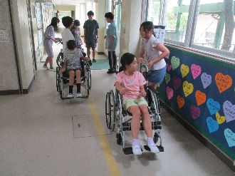 5年生は社会福祉協議会岩槻区事務所や松鶴園の皆さまのお力を得て「高齢者・障害者疑似体験」をしました。実際に老人養護ホームで働くスタッフの貴重なお話を聴けたり、疑似体験キットを使用し生の貴重な体験をしたりと非常に有意義な時間を過ごすことができました。体験の感想を聞いてみました。「とても大変だなぁと感じました」「お年寄りには優しくしたい」「(乗っている間)少し不安でした」など一人ひとり感じたことは多いようです。この体験をただ、何かやってみた。という感想にとどまらず、これから何を学んでいくのか。福祉という視点の眼鏡をかけたとき町の中や建物の中はどう見えるか。よ~く考えてほしいと思います。