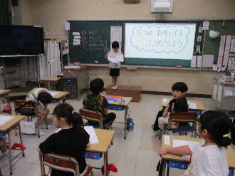 今日から身体計測が始まりました。夏休みを過ごした子供たちの体がひと回り大きくなった気がしていましたが、実際にどれだけ成長しているか後日お知らせいたしますのでご確認ください。また、体だけでなく心の成長も感じられました。1年生が体育の時間にお友達と協力し、声をかけあいながら運動する姿はとても素晴らしかったです。5年生が夏休みの自由研究の発表を行っていました。プレゼン資料を背景に発表をしたり、仲間の研究に興味深く話を聞いたり真剣に学ぶ姿からは、完全に夏休みモードを脱却している様子が伝わってきました。あおぞら学級では「話す、聞く力」を育むことを目指した授業研究を行いました。子どもの力を育成するための工夫を教員がアイデアを絞って子ども達の活動に効果的に組み込みました。授業を参観した教員同士で協議し、自分自身の指導力向上に活かしていきます。