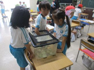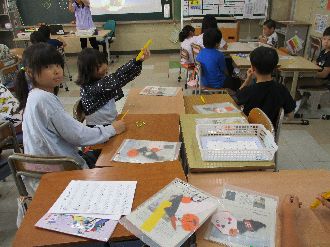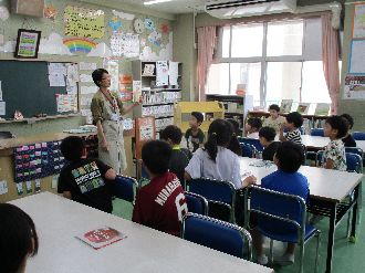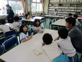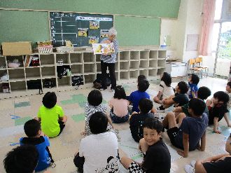 2年生の教室にものすごくクオリティの高い手作り遊びキッドができています。何度も遊んでは手直しをしどんどん行い、よりよい物にしていく姿~。なんてことないものからおもしろいもの見つけたよ~♪ひらめき工房の歌が頭をよぎります。3年生は虫探しです。細かいところや遠いところまで隅々探したくさんの虫を見つけることができてました。「教頭先生!見て見て~あそこあそこ!」と教えてもらいましたが…。「おっ…お~」とか言って結局見つけられませんでした。子どもの観察眼に感心したとともに視力の低下に初老を感じました。3日連続のお話です。あおぞら学級が読み聞かせを聴いていました。この本を読みます!と図書館司書が紹介した際には「だれが書いているの~?」「なにそれ~」「どんな話なの~」なんてつぶやきがザワザワありましたが、いざ読み聞かせが始まると一気にシ~~~ンとなり本の世界に引き込まれていきました。読み聞かせはいいものですね。