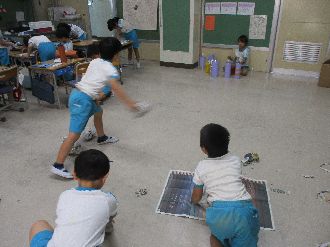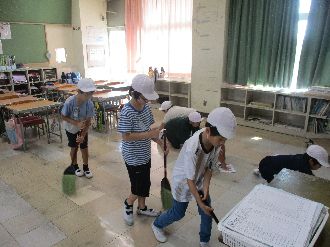 トクリキっ子はお掃除を丁寧にしっかりと行います。ホウキやゾウキンをかけるお友達のピッときれいに並んでいる列のきれいなこときれいなこと!!見ているこちらが心がピカピカきれいになります。