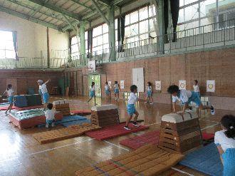先日行っていた3年生の作文のメモの続報です。いよいよ作文用紙にまとめ始めていますが…なんという集中力でしょう。次々に文章に表されます。「先生の3枚までね」という目安もすでに超えてしまっている子も!スモールステップの手立ては子どもたちにとっては、とてもいいものなのですね。4年生は体育の跳び箱です。ここでもスモールステップで自分ができる所の場で学ぶ方法を取っていました。学びは自分で調整します。