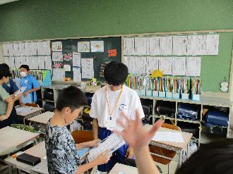 さて、今日から3日間、中学2年生6名が未来くるワーク職場体験として活動します。それぞれが各クラスに入り、教職員の立場で小学校で過ごします。始めは緊張した様子が見られましたが、だんだんと子どもとの関わりが増えて、慣れてくれたようです。子どもたちにとっても、年が近いけど大きなお兄さんお姉さんとの交流はよい経験になることでしょう。中学生も小学生も、ともに普段できない体験から自分なりのより学びにつなげてほしいと思います。