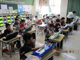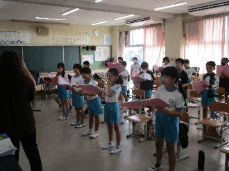 1年生が鍵盤ハーモニカの特訓をしていました。聞けば来週テストのようです。練習の成果をはかる機会があると頑張る気持ちも増しますね。緊張もしますが、その緊張感も大事なことなのかなと個人的には思います。2年生が歌を披露してくれました。私から一つだけ「皆さんの笑顔が見たいです。可愛い素敵な笑顔で歌ってください。」というアドバイスをしました。今日一番感動した、最高の笑顔で歌う2年生を見られました。