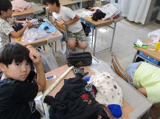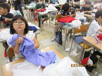 1年生が何やら体育館でおしくらまんじゅうをしていました。何やっているのかな~と近寄ってみるとお腹にボールを挟んでいます。お友達と協力をしてボールを運ぶようです。「もっとこっち」「手はうしろだよ」様々なつぶやきが聞こえて笑顔になりました。2年生は子どもまつりの準備をしています。子どもの子どもによる子どものためのまつりの準備です。子ども達の次々にあふれる発想や提案に、こんなにも主体性の高まる行事はないなぁと感じていました。3年生は現在絶賛昆虫ドはまり中!業間休みの度に何かいないかなと草むらをかき分けています。段々と虫にとっても居心地のよい気温になってきましたので、見つけられると思います。ただ…あまり出会いたくない虫も出ますので要注意ですね。4年生は災害から身を守るため、自分としては何ができるか、方法をチームで考えます。タブレット・ノート・話し合い素敵な学習です。5年生初めてのミシン学習です!触ったことあるかな?リアルな体験でまた経験値を増やせるところですが、怪我をしないようにです。安全に行えるように専科の話をよく聞いています。ミシンボランティアさんお力添えをお願いします。あおぞら学級は形態模写をしています。いわゆるジェスチャーゲームですが、これが皆上手なのです!おもわずカンガルーを披露してくれた子に自然と握手を求めてしまいました。ブラボーです。