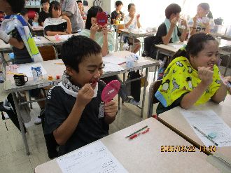 今日も酷暑でした。昼前くらいの時間から熱中症指数が「危険」を示し、1日中外での活動は禁止となる状況でした。体育館や教室での学びはトクリキっ子全集中です。今週も一生懸命学ぶ姿が見られ大変うれしく思います。