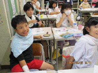 「芸術の秋」3年生が何やらお家から持ってきたたくさんの材料でワクワクの友達を作っていました。何ができるのでしょう。作成している子どもたちの笑顔を見てこちらがワクワクするそんな時間でした。「読書の秋」4年生が図書室で読書をしていました。お友達と頭を突き合わせて読み合う姿、一人で集中して読む姿、ワクワクしながら本棚から選書する姿など(やっぱり読書っていいよなぁ)と思う私でした。「健康の秋」あまり言いませんが勝手に作りました。5年生が歯科衛生士さんと一緒に「歯みがき名人」について考えていました。(みがいてる)から(みがけてる)へという言葉がとても印象的で、子どもたちの歯みがきに対する意識が少しでも変わってくれたらいいなと感じていました。ご家庭でアウトプットできるとさらによいと思います。「食欲の秋」本日のさつまいもごはんのお話です。秋を感じとても美味しく子どもにも人気の献立であったようですが、実は職員室では、結構多くの子ども達に(何かの混ぜご飯)がお口に合わない現象があると話題に上がりました。どうですか?「勉強の秋」6年生が集中して学習に取り組んでいます。教室の扉を静かに開こうとゆっくり開けても、鳴ってしまう音すら響く程の(シ~~ン)とした空間で集中しています。入らずまたゆっくり扉を閉めました。「運動の秋」あおぞら学級が裸足でマット運動をしていました~。ひんやりとさえ感じる体育館の床気持ちいい~。えんぴつ転がりの場面だけ見ていましたが、あれはなかなかまっすぐ転がるのが難しいのです。しかし多くの皆さんがマットのど真ん中を捉えコロコロしている~。すごい!!