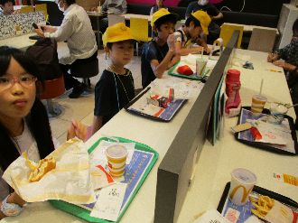 アナ5(安全・なぜ?五感)を意識して活動しましょうというお話を朝しました。あおぞら学級の子たちは皆一生懸命校外学習に取り組みました。まずは切符購入から始まりました。一人一人が事前に学んできた切符の買い方を実践できたようです。素晴らしい。職業調べではあらかじめ決めていた質問内容を聞きながらしっかりとメモを取ることができました。答えが返ってきた時の反応が素敵でした。素直に驚いたり質問をさらにしたりするいいインタビューでした。昼食はマクドナルドです。こちらについても一人一人が思い思いの商品を1人で購入しました。ワクワクドキドキのお買い物だったでしょう。食事後のグループに分かれたお土産購入のお買い物もたくさんの品物の中から選ばなければならなかったので大変でしたね。わたしは高学年男子のお買い物を見守ったのですが、買い物の仕方が上手でした。まず何件か何が売っているかを回り、その後一番欲しいものがある場所へ行くというやり方です。限られた所持金の中で購入できるか足し算をしていたのも印象的です。無事に皆お気に入りのものを購入することができたようです。しかし、後で聞いたのですがこれは自分用に購入しているものではないと言います。他校とのプレゼント交換の際に使用する物のようです。誰かのことを考えてじっくり時間を使っていたのかと思うと、さらに心がポカっとしました。時間が余ったので近くの公園で全員でだるまさんが転んだや鬼ごっこをして遊びました。しかしそれでも皆の事前準備がよく、予定していた時間よりも1時間弱も早く行程を終えました。帰路「あ~疲れた~~けど楽しかった~~」という言葉を聞き心から嬉しい気持ちになりました。帰りの会では担任より「今日はどうでしたか?」の問いかけがありました。皆一様に「楽しかった~」と疲れと満足感が詰まった素敵な笑顔で校外学習を終えました。