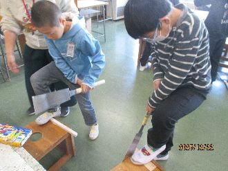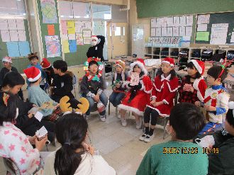 6年生です。冬休みの目標を立てていました。なかなか具体的な目標になっている事に素敵だなぁと思いました。大事なのはこの目標をご家庭の皆さんと共有していく事であると思いました。5年生です。図工の糸鋸の活動に出合えました。どの子も糸鋸を使っている周りに友達がいる事です。友達の使い方から何かを学んだり教えあったりする様子が見ていて素敵だなぁと思いました。4年生です。総合の学習で人生100年時代を生きる為に自分で気をつける事の発表会をしていました。ここでも素敵を発見です。発表のスタイルがグループによって様々ある事です。紙芝居、マンガ、新聞、ペープサート、グラフなどなど、相手に分かりやすく伝える為にグループで行き着いた形なのかなぁと関心して見ていました。あおぞら学級ではクリスマスパーティー後、毎年恒例、本物サンタが現れました。ク、クオリティ高いでしょう。また来年も来てねサンタさん。3年生はパーティ写真です。私が見に行った時には終了後で大掃除が始まっていたのですが、担任の先生の記録をいただき配信です。み、見たかったぁ。2年生の続・大掃除です。とても上手に掃除をしています。今日も「何で掃除してんのー?」と声をかけてみました。帰ってきた言葉は「キレイにしたいから」ですと。素敵ー。1年生は初の小学校でのクリスマスパーティー、校庭で遊んでいる様子がとても可愛らしくいつまでも見ていたい気になっていました。
