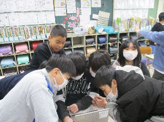 昨日の食育の続きのお話です。本日の2年生の給食の様子を見に行きました!なんと素敵なマナー名人たちがたくさんいるではありませんか。よい姿勢で、食器の使い方をいつも以上に意識して食事をしている名人たちをニコニコ見ていると、「なんでずっとぼくたちを見ているんですか?」の声が上がってしまいました。「いやっみんなが名人すぎて可愛くて見入ってしまったのだよ。」と答えました。ご家庭でもできるようになっていたら手放しでほめてくだされば幸いです。5年生が書きぞめをしていました。聞けばこれで3回目の練習であると言います。よい集中力です。書けば書く程上手くなってきているのが分かります。冬休みにはご家庭でも書きぞめをしていただく課題があります。こちらについても是非ご家庭でよく見ていただき、言葉がけをいただければ幸いです。先日紹介した3年生のキャッチバレーボールにまた出合えました。「いくよ~~っ」という合図で始まるのも、このゲームの特徴です。見ていて気持ちよくなります。そして一球一球大事に真剣にキャッチやパスやアタックをする子ども達の表情、得点が入った時のチームメイトと分かち合う歓喜の声、失点をした際の思いっきり悔しがる姿となぐさめる姿、スポーツっていいなって思います。でも、負けるとやはり悔しいものです。ものすごく悔しくて泣いてしまう子もいます。次につなげるにはどうしたらいいだろうということを考えられるといいですね。あおぞら学級高学年の家庭科で「裁縫」をしていました。フェルトと綿を使って見事な「おにぎり」を作っていました。(ほぉ~)と驚くばかりです。器用だな~純粋に欲しいと思うクオリティでした。最後に6年生が理科の時間にmesh(メッシュ)というものを使って、プログラミングの学習をしていました。振ったり暗くしたりボタンを押したりというアクションがあると光ったり消えたりするよう命令をアプリでつなげています。頭を突き合わせてこう命令すればいいんじゃない?……お~~~やった~。などと言いながらの学びです。トライアンドラーン、やってみるもんです。