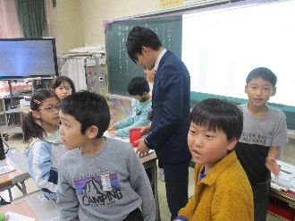 本日まで人権週間でした。人権週間で校長先生の講話があったり学校図書館司書の読み聞かせがあったり人権に係る内容のDVDを見たりと様々な活動がありました。1年生の読み聞かせの時間に出合えました。言われて・されて嬉しかったことをじっくり考えていた子が「ありがとうと言われたとき」と答えていました。心がほっこりした時間でした。2年生の国語の時間を参観しました。この授業はペア研修といって先生同士で授業内容を見合う本校の授業研究でした。子ども達は話し合いをしながら分からないことや疑問に思ったことを聴き合い学び合う時間です。友達の考えと比べられると自分の考えがよりかたまり、自信を持てるのかなと思って、たくさんの文章を書いている子ども達を眺めていました。3年生の理科の実験です。ものの重さをお手製のはかりで調べています。文房具は1㎥立体の何個分かを計っていたのですが、「い~~ちに~~」と声を揃えて数える姿や「おぉぉ~」と重いものをはかりに入れた時の傾きに驚く声が印象的でした。このような声はいいですね~聴いていて嬉しい気持ちになります。あおぞら学級は書きぞめをしていました。墨の香りは心落ち着きます。とてもいい姿勢で書をしたためる姿、集中しています。(頑張れ~)と心の中で思いながら教室を後にしました。5年生です。ものの溶け方の実験です。実はこの実験とても難しいものです。20年前の、わたしも5年生を担任していた時この実験をして実験結果が出そろわず、失敗をして改めて全員で実験しなおした記憶がよみがえりました。(その後成功したのですが…やっぱり失敗したことってよく覚えていますね)しかし、トクリキっ子5年生の見事な実験力、友達と役割の分担をして、自分にできる最高のパフォーマンスをしています。事前準備や調べがよくできているのでしょうか。アッパレです!!